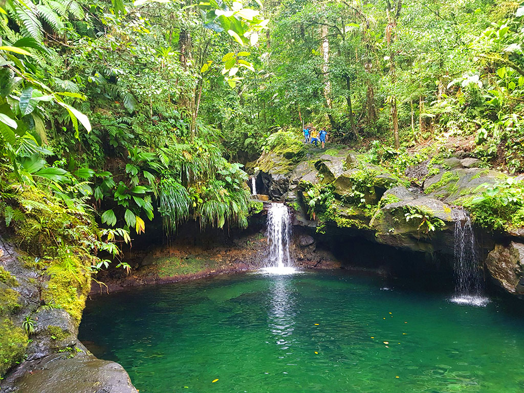 oraz na Basse-Terre, zachodnie skrzydło Gwadelupy. Oprócz cudownej, soczystej zieleni znajdziecie tam mnóstwo pieszych szlaków, łatwiejszych i tych wymagających naprawdę dobrej kondycji i posiadania sprzętu do trekkingu – bez dobrych górskich butów nie ma co nawet próbować wspiąć się wyżej. O każdej porze roku w dżungli znajdziemy miejsca, gdzie jest bardzo ślisko, stromo i nietrudno o wypadek. My zobaczyliśmy kilka pięknych wodospadów…niektórzy nawet odważyli się wejść do lodowatej wody:)